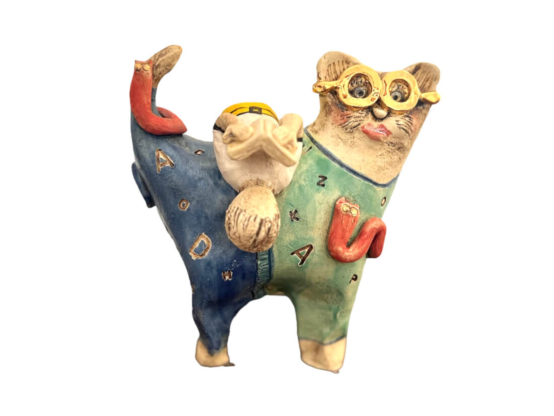 Stoneware Feline & Friends. These friends are all about books and reading. They would rather spend Friday nights on the couch with a book than out at a party.