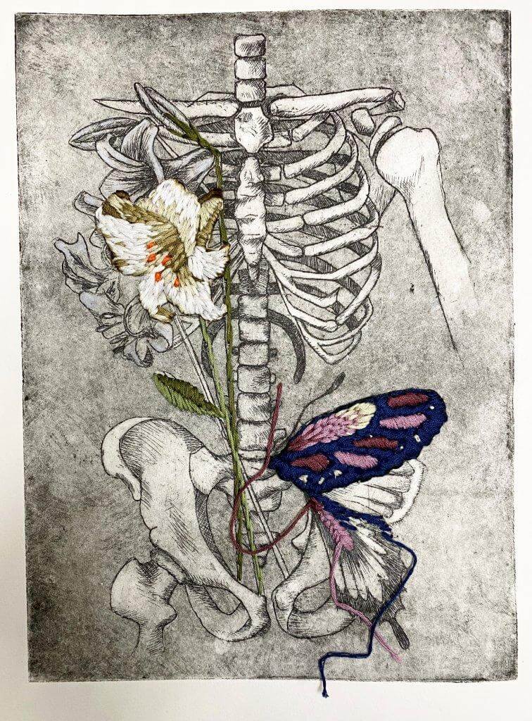 Medium: Copperplate, drypoint Etch on Fabriano 285gsm Archival paper with Embroidery