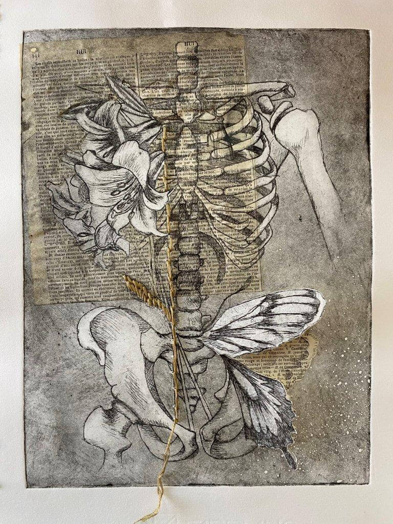 Medium: Etch with Chine-collé and embroidery Fabriano 285gsm Archival paper