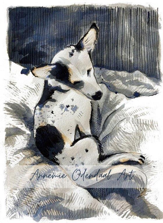 This is KK, my dear friend’s rescue dog. He is both deaf and blind, and totally extraordinary! I was inspired to do this series, to emphasize how our attitude can determine our happiness. Despite all the obstacles, we can still have an abundance of love and joy. The 4 pen and ink sketches I made, subtly spells the word love. And man’s best friend always gives it abundantly and unconditionally.