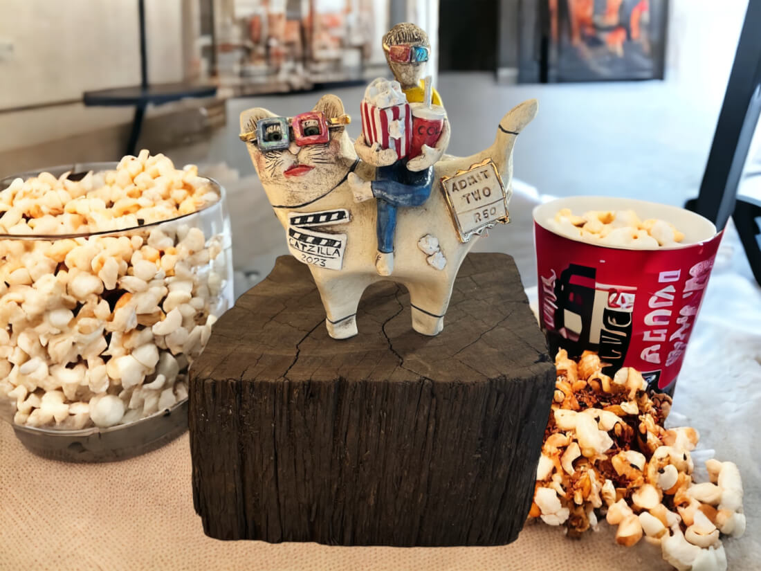 Feline and Friends – Popcorn and soda. Tick. 3D glasses. Tick. Friend. Tick. Lights, Camera, Action!