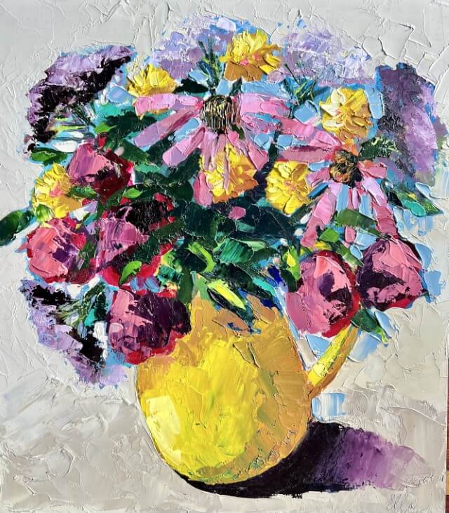Through my floral paintings I want to bring joy and happiness into your home. I want to bring light and colour, a smile to your face. Through these works I want you to know that there is hope after the winter.